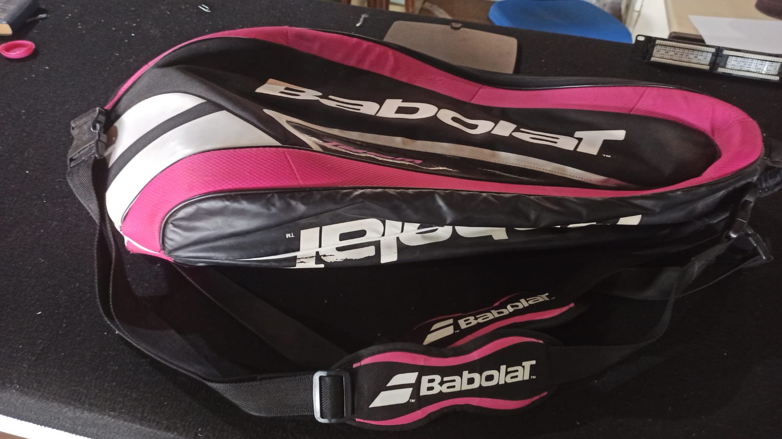 * Bolsa Babolat Team na cor preta com detalhes rosa